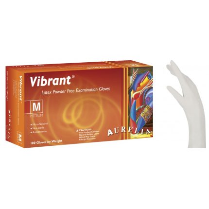Εξεταστικά γάντια Aurelia Vibrant micro-textured, μίας χρήσης, χωρίς πούδρα, κατασκευασμένα από 100% φυσικό λάστιχο, αμφιδέξια, σε κρεμώδες λευκό χρώμα, μη αποστειρωμένα.